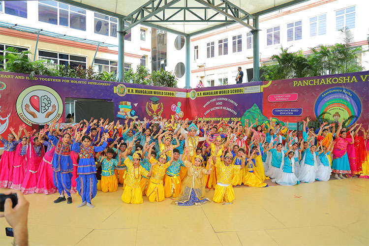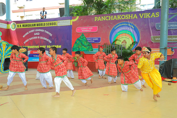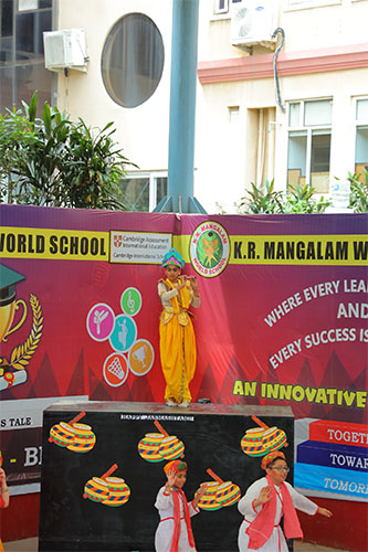 The spirit of devotion and cultural harmony lit up the campus of K.R. Mangalam World School as Class V students presented a vibrant Janmashtami celebration, “मधुसूदन मोहना.” The event began with a serene Gurbani recital, followed by a graceful welcome dance depicting the playful leelas of Shri Krishna. The highlight of the morning was a grand theatrical performance portraying Krishna’s journey from birth to the triumph over Kansa — complete with powerful dialogues, expressive acting, and mesmerizing dance sequences.